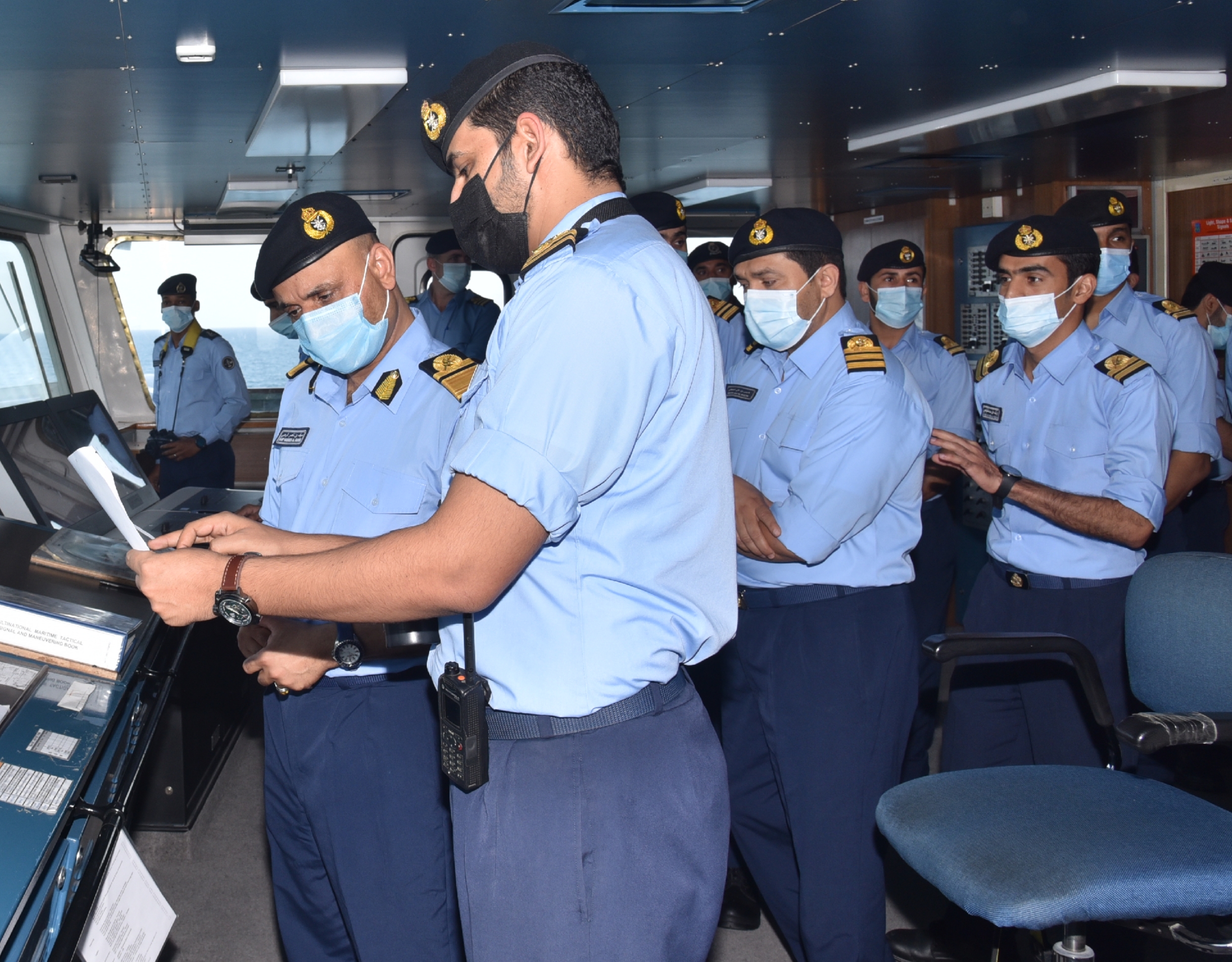 رافق قائد البحرية السلطانية العمانية خلال زيارته للتمرين عدد من كبار ضباط البحرية السلطانية العمانية.